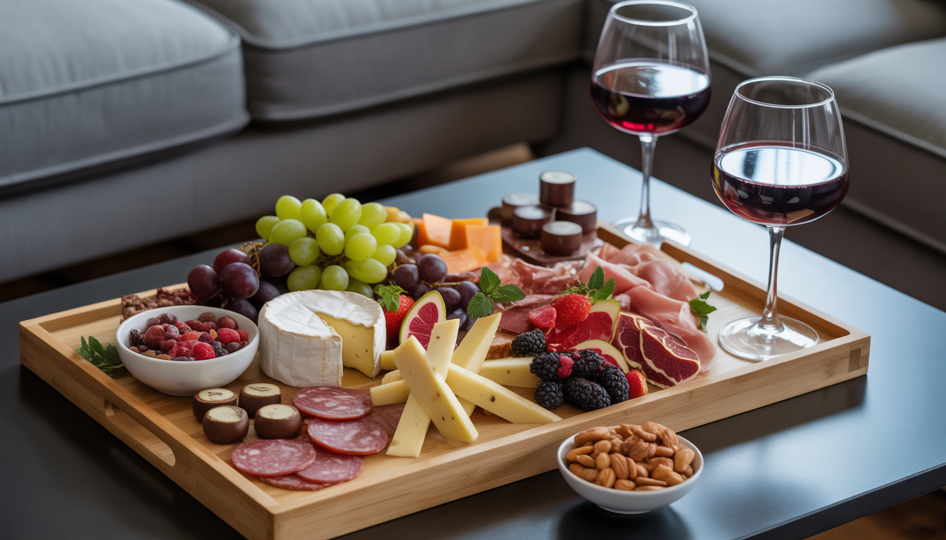 Kumpulkan camilan favorit Anda di piring yang menarik: keju, makanan asap, buah segar, cokelat… Membagikan piring ini mempromosikan keakraban dan merangsang perdagangan. Menurut Statistik Kanada, 82% pasangan suami istri menyukai memasak atau mengemil bersama selama malam mereka di rumah. Tambahkan botol anggur atau minuman rumah untuk memperindah momen tersebut.
