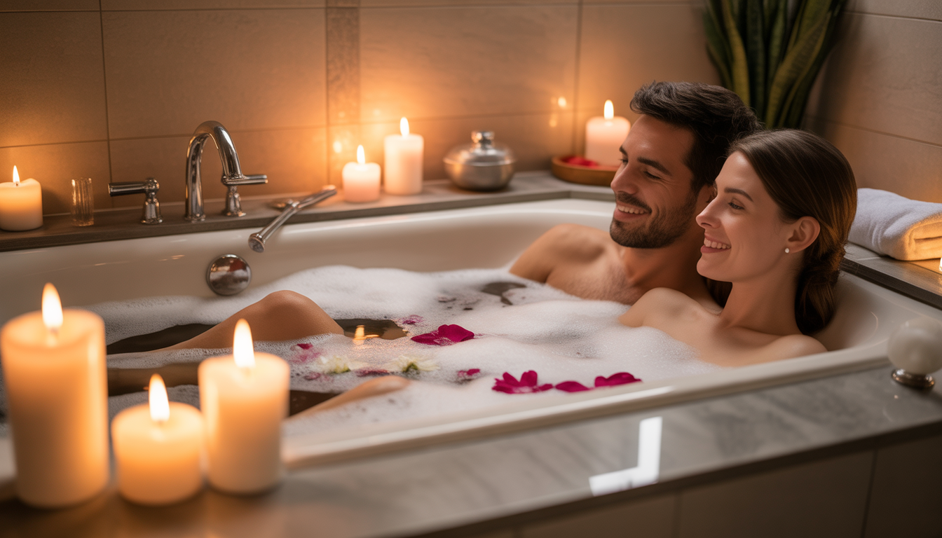 Ubah kamar mandi Anda menjadi spa dengan lilin, garam mandi, dan daftar putar Zen. Mandi panas bersama dapat mempromosikan relaksasi dan keakraban. Menurut Canadian Wellness Association, 47% pasangan mengatakan bahwa mandi bersama memperkuat ikatan intim mereka. Tambahkan beberapa kelopak bunga untuk sentuhan romantis dan biarkan diri Anda terbawa oleh manisnya momen tersebut.