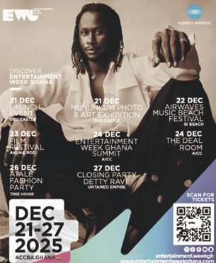 Jum’at, 19 Desember. 18:00Penghargaan Legenda Film Ghana. Mengakui Kwaw Ansah, sutradara terkenal dan tokoh budaya, yang karya-karyanya telah secara mendalam membentuk narasi perfilman Ghana dan Afrika. @LAFA – La Foundation for the Arts, Accra.