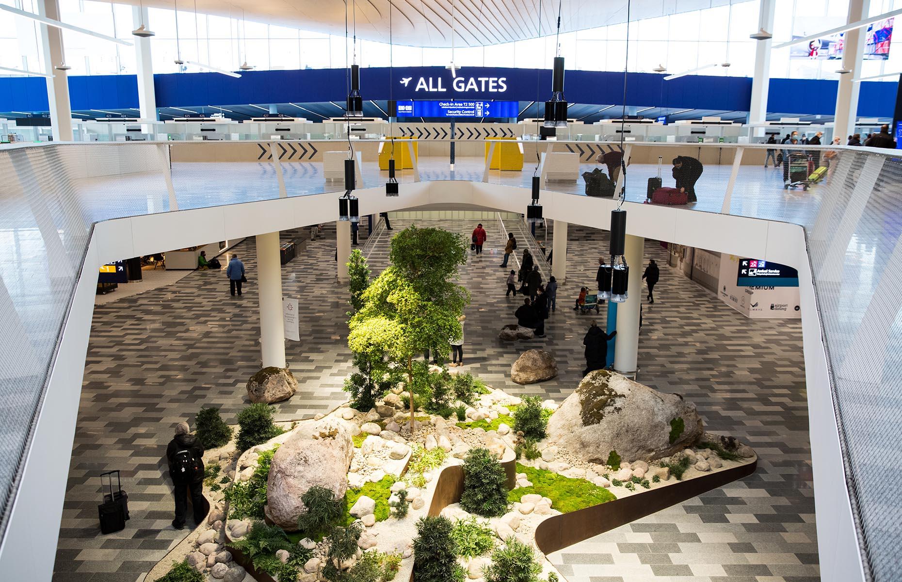 Bandara internasional Helsinki menarik perhatian. Sebegitu menariknya hingga sebelumnya telah terpilih sebagai salah satu bandara paling indah di dunia. Selain mempertimbangkan warisan alami dan budaya lokal, kompetisi arsitektur dan desain Prix Versailles 2023 juga melihat keberlanjutan lingkungan bandara tersebut. Ruang keberangkatan memiliki langit-langit kayu yang menakjubkan yang terbuat dari pinus Finlandia, sementara ruang kedatangan memiliki diorama alam yang disebut Luoto, seperti yang terlihat dalam gambar. Bandara ini juga memiliki galeri seni, museum aviasi, dan teras yang indah.