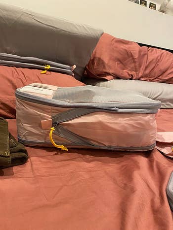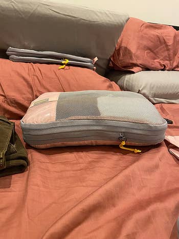 1. Akumpulan kubus packing kompresiuntuk meningkatkan kemampuanmu dalam mengemas, karena ini membuat barang-barangmu padat dan terorganisir. Kamu bisa mengurutkannya berdasarkan barang atau hari — jadi ketika kamu turun dari pesawat dan sampai di hotel, kamu bisa dengan mudah mengganti pakaian tanpa harus menyelam ke kopermu untuk mencari atasan yang cantik itu!