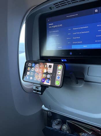 26. APemegang telepon tanpa tangan (berputar!)Anda dapat meletakkannya di meja lipat Anda, kursi lengan, barang bawaan, dan hampir semua permukaan datar lainnya. Ini akan sangat berguna pada penerbangan yang tidak memiliki layar bawaan.