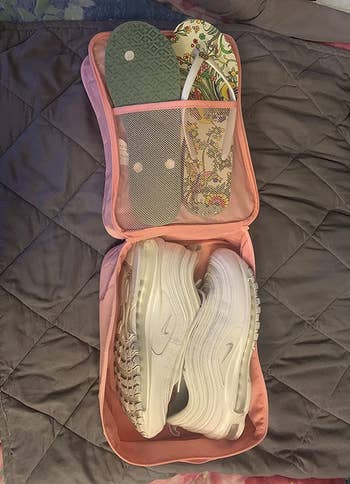 Ulasan yang menjanjikan:Anda benar-benar bisa memasukkan tiga pasang sepatu di sini! (Ukuran 6,5 sepatu wanita, cocok untuk hak tinggi, wedges, dan sandal.) Saya membeli dua dan akan pasti membeli lebih banyak untuk suami saya.10/10 akan merekomendasikan! Saya sering bepergian, dan selalu membawa terlalu banyak barang, ini membantu mengurangi ruang dan stres secara signifikan!” —Taylor