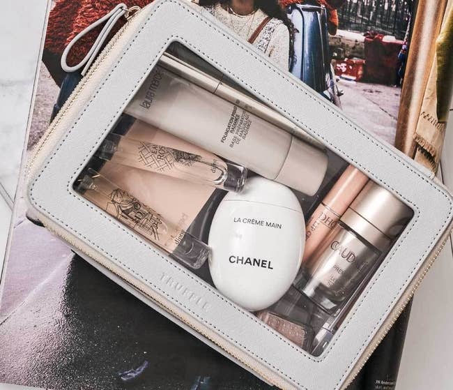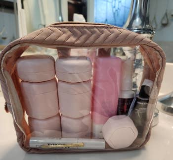 5. Awadah perlengkapan mandi yang bersihjika benda-benda yang lebih besar seperti sikat gigi listrik Anda tidak muat ke dalam kantong kecil yang compact. Ini bisa menampung sebanyak kantong berukuran quart dari segala sesuatu yang Anda butuhkan saat bepergian. Plus, ini sangat lucu!!