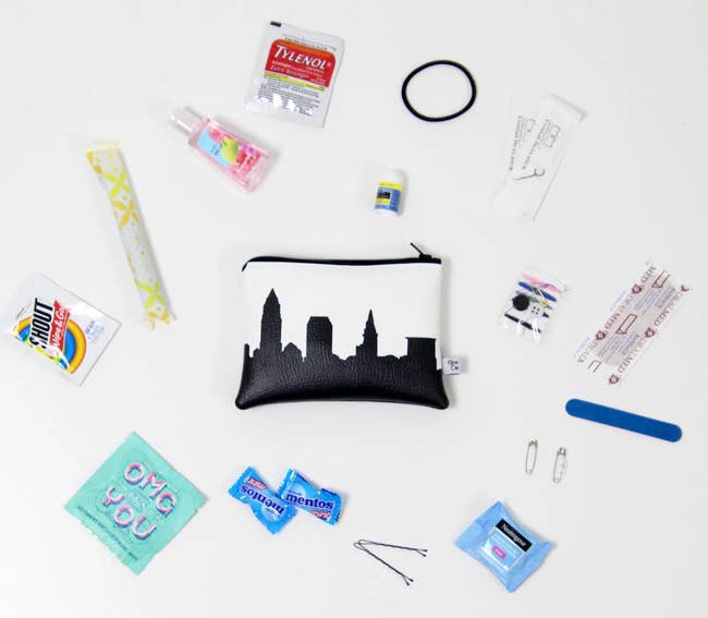 21. Asaku mini skyline paket daruratdilengkapi dengan hal-hal seperti ikat rambut tambahan, Tylenol, plester, dan tisu penghilang bau. Baik Anda gunakan selama penerbangan nyata atau simpan di tas Anda untuk hari libur berikutnya, ini pasti akan sangat berguna.