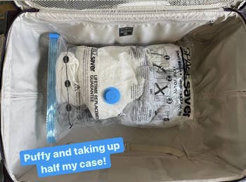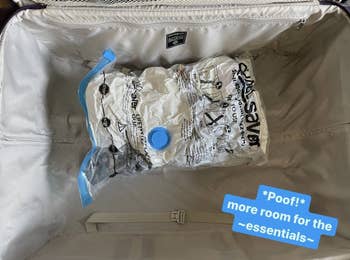2. Atau sekumpulankantong penyimpanan vakumyang sangat berguna saat kamu sedang mempackinguntukperjalanan, tapi sangat berguna ketika kamu menyadari bahwa kamu terlalu berlebihan saat berbelanja di toko lokal dan membawa pulang lebih banyak dari yang kamu bawa dari awal. Cukup kemas pakaianmu dan gunakan pompa perjalanan yang disertakan untuk mengeluarkan udara berlebih, sehingga kamu bisa memasukkan tasmu hingga penuh!