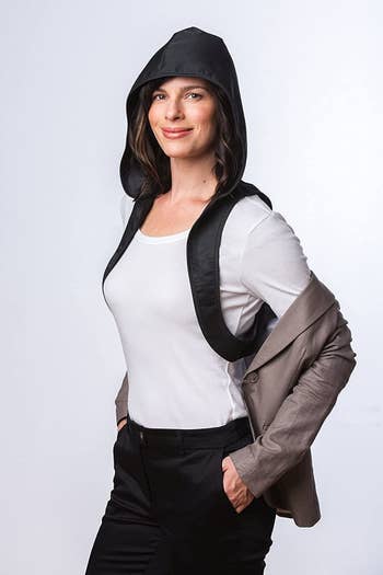 Ulasan yang menjanjikan: “SUKA banget hoodie ini! Saya sudah lama mencari sesuatu seperti ini – apa ide yang hebat!! Kebanyakan jaket dan mantel saya tidak memiliki hood, dan ini adalah cara terbaik untuk menjaga rambut saya tetap kering saat memakainya. Rambut saya sangat mudah berkeriting bahkan jika hanya ada satu tetes hujan yang mengenainya (atau kabut atau angin) jadi ini pasti menjadi kebutuhan wajib dalam lemari pakaian dan hidup saya. Saya benar-benar suka cara penampilannya juga – seperti memakai hoodie di bawah jaket tapi tidak terasa besar atau panas. Saya bisa meletakkannya di tas atau saku saya dan itu tersedia untuk menjaga rambut saya seperti yang saya suka. Suka, suka, suka!!!” —Terry Thornburgh
