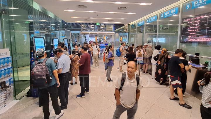 Wisatawan membeli tiket Pearl River Night Cruise di Guangzhou, Provinsi Guangdong, Cina, 16 Oktober 2025 . Tempo/RR Ariyani