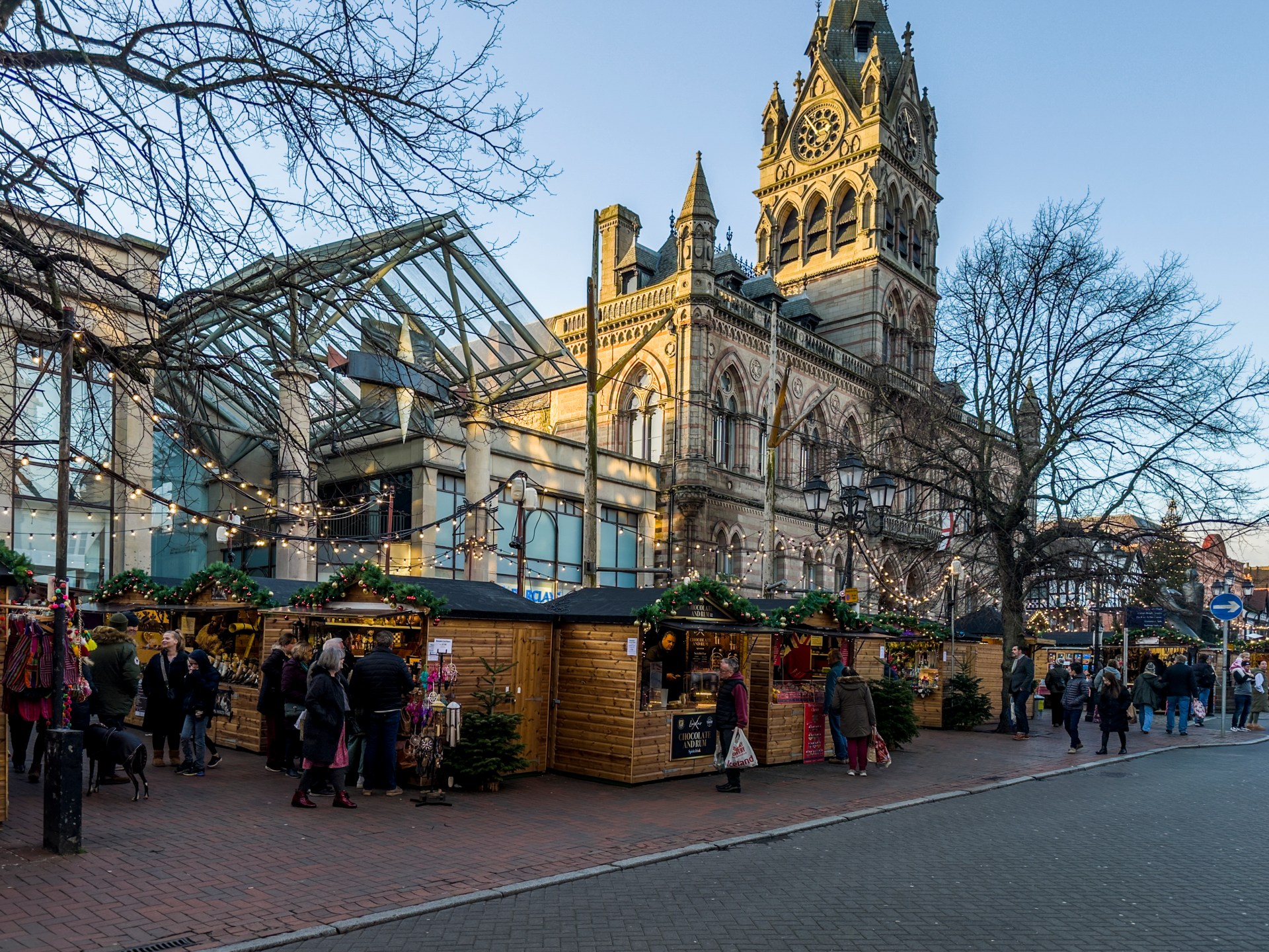 Membanggakan 70 gerai yang dibangun sementara di bawah bayangan kota kuno Chester yang bergaya Gothic Victoria dan katedral abad pertengahan, pengunjung akan menemukan penawaran pasar Natal Jerman tradisional seperti bratwurst dan anggur hangat. Plus, pedagang independen setempat yang menjual lilin beraroma, permen karet, dan lainnya.