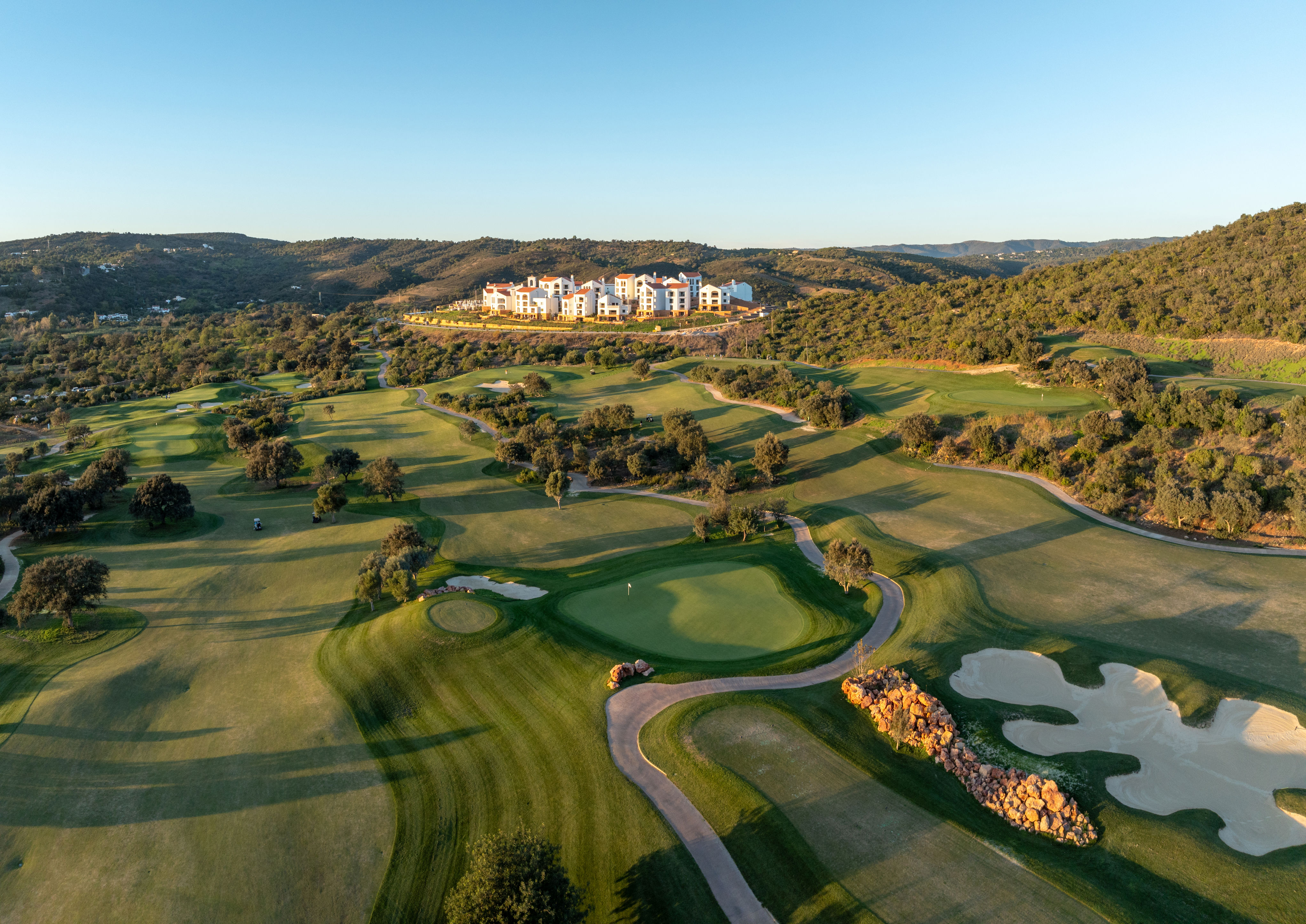 Ia memanfaatkan pemandangan alam dengan luar biasa, dengan lubang-lubang yang mengelilingi lereng yang berombak daripada terasa seperti dibangun di atasnya. Pukulan awal yang lebih tinggi memberi Anda pemandangan luas dari bukit-bukit Algarve dan bahkan matahari terbenam tergantung pada kapan Anda bermain.