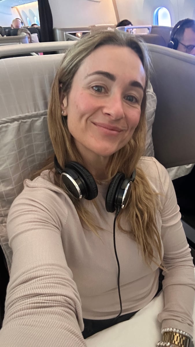 Tetapi untuk penerbangan ini, kami duduk di kelas bisnis — jadi realitas saya sedikit berubah karena kemewahan.